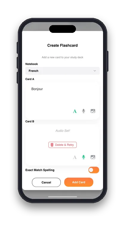 Yes, you can create fully custom flashcards with text, images, and audio for any subject you’re studying.